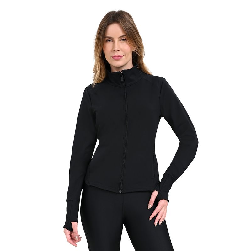 Os orifícios para os polegares integrados ajudam a manter as mangas no lugar e retêm o calor