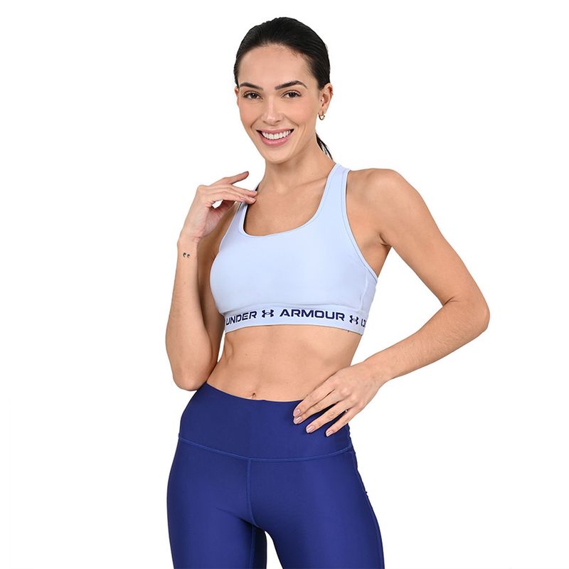 O Top de Treino Feminino Under Armour Crossback Mid Bra oferece suporte estratégico, adaptado para atividades de suporte médio, como ciclismo, musculação e boxe. Os Bojos macios e de secagem rápida fornecem estrutura e cobertura extras com perfurações para maior respirabilidade. 87% Poliéster, 13% Elastano.